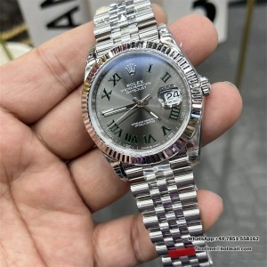 VSF VS3235 DateJust 41mm Wimbledon Fluted Bezel Grey Dial Green Roma Marker Oyster Bracelet