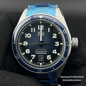 Autavia SS 42mm OF 1:1 Best Edition Blue Dial Blue Ceramic Bezel on SS Bracelet SW200