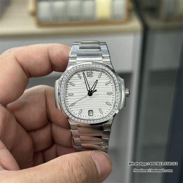 3KF A324SC Nautilus 7118 35.2mm Diamond Bezel White Dial SS Bracelet
