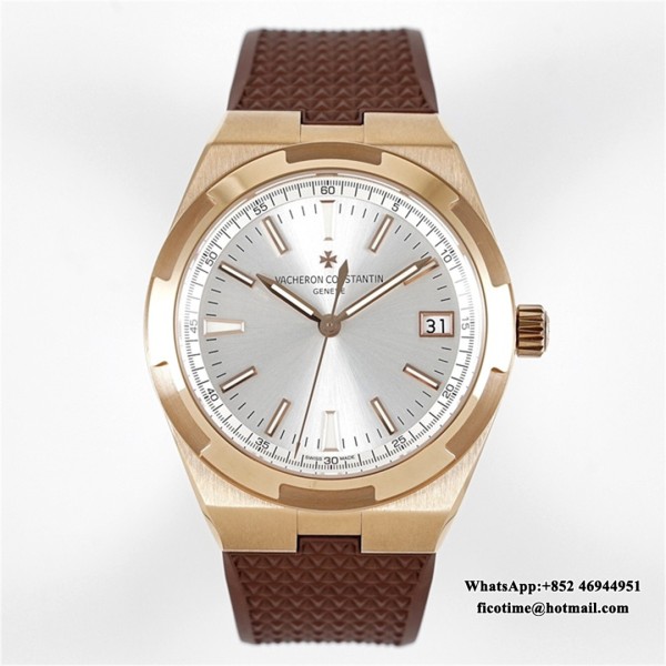 8F A5100 Overseas 4500V 41mm Silver Dial RG Brown Rubber Strap