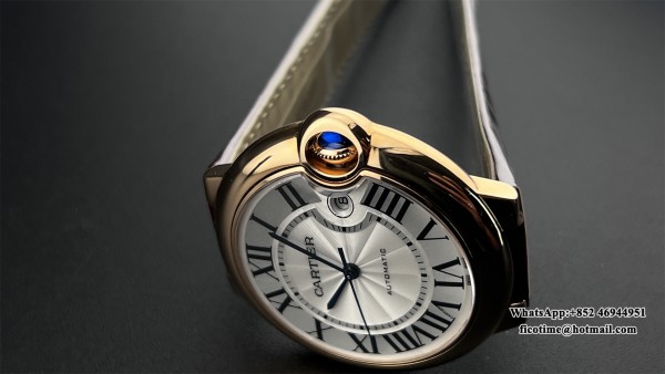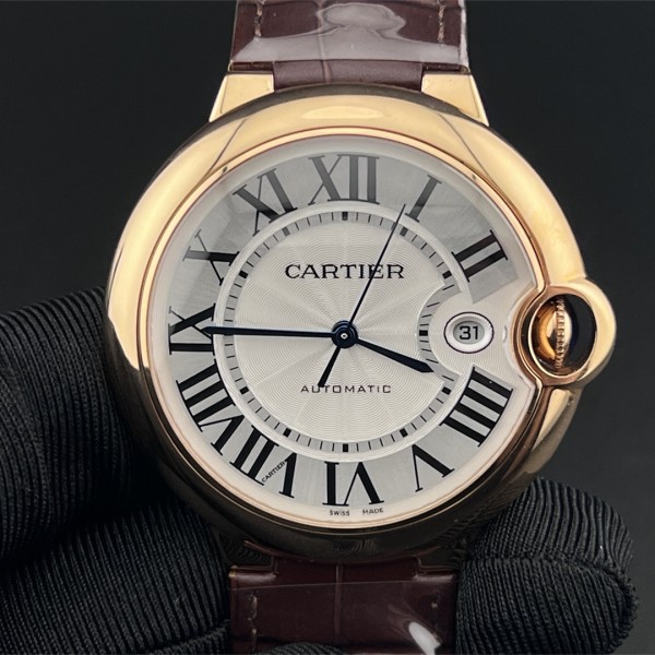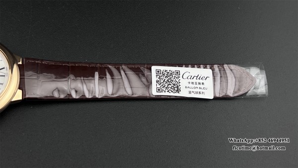 AF A2824 Ballon Bleu De Cartier 42mm RG White Dial Brown Leather Strap