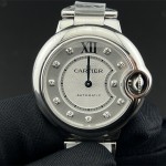AF NH05A Ballon Bleu De Cartier 33mm White Dial Diamond Marker Two Hands SS Bracelet