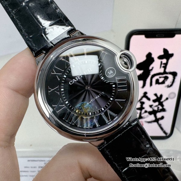 V6 A2824 Ballon Bleu De Cartier 42mm Black Dial Black Leather Strap