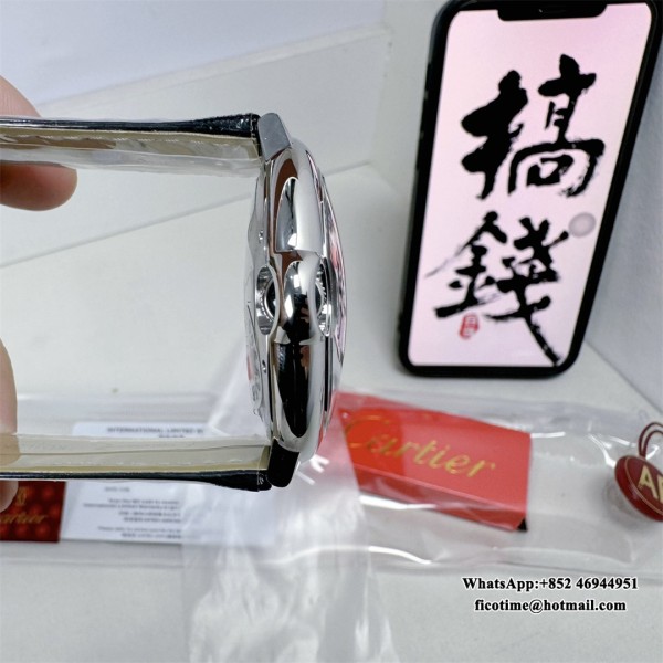 TWF A23J Drive De Cartier 40mm White Dial Black Leather Strap