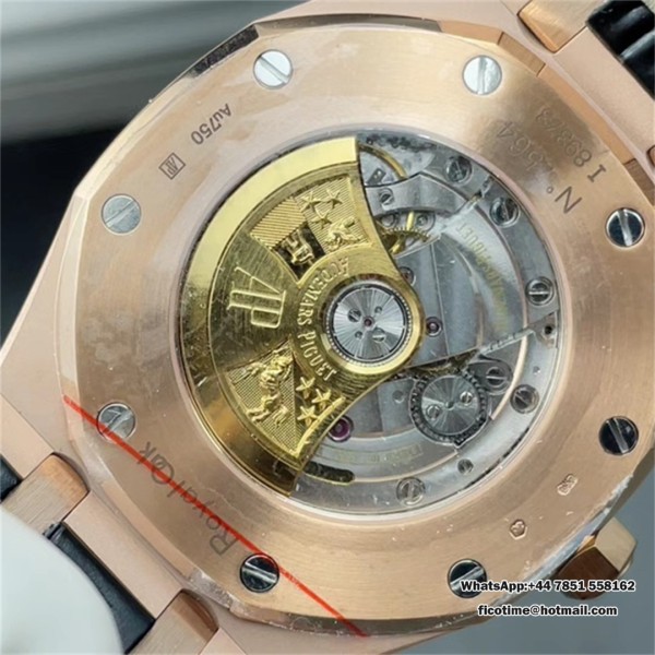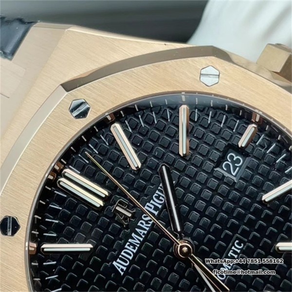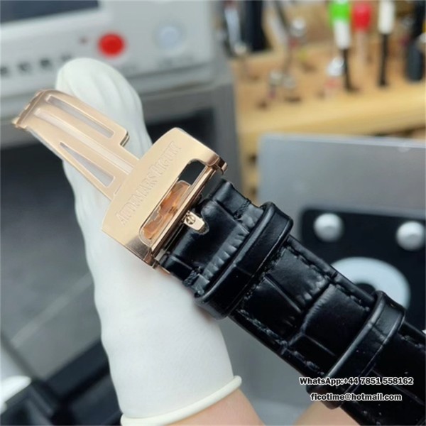 APSF A3120 AP Royal Oak 41mm 15400 RG Black Dial Black Leather Strap