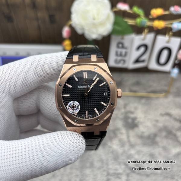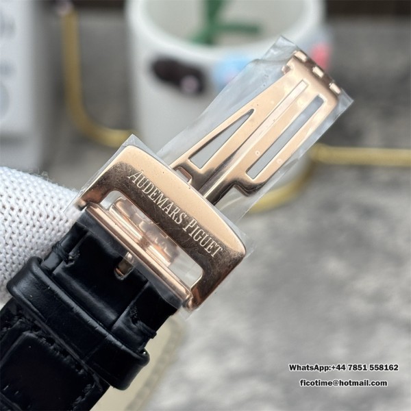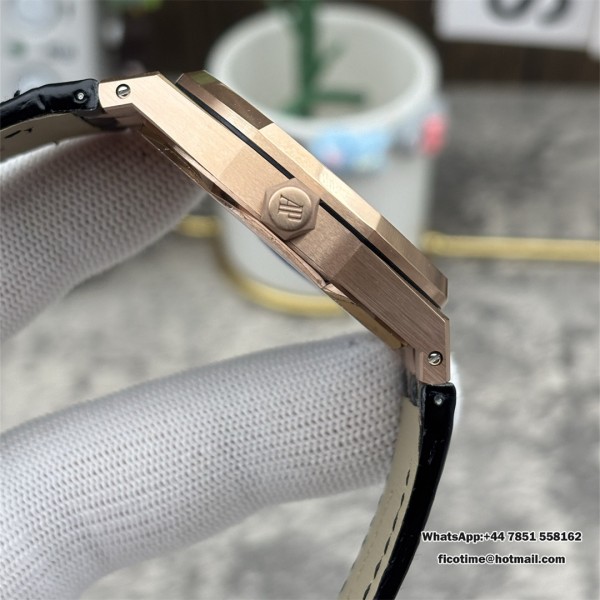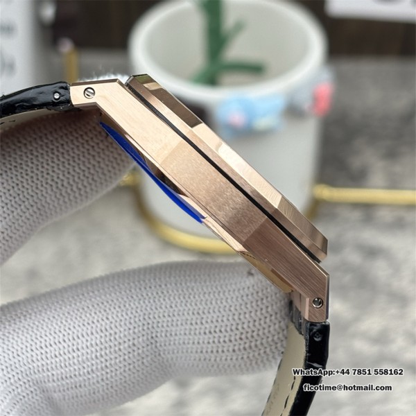 APSF A4302 AP Royal Oak 41mm 15500 RG Black Dial Black Leather Strap