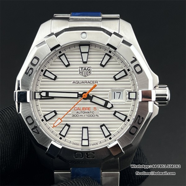 Aquaracer Calibre 5 43mm OF 1:1 Best Edition White Dial SS Bezel on SS Bracelet SW200