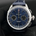 BLSF A7750 Breitling Chrono 42mm PREMIER Blue Dial SS Bracelet