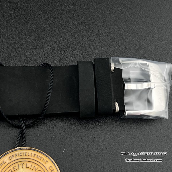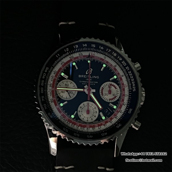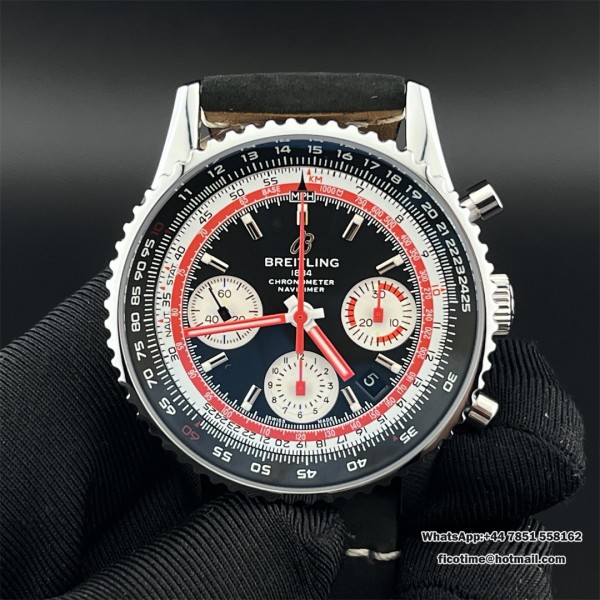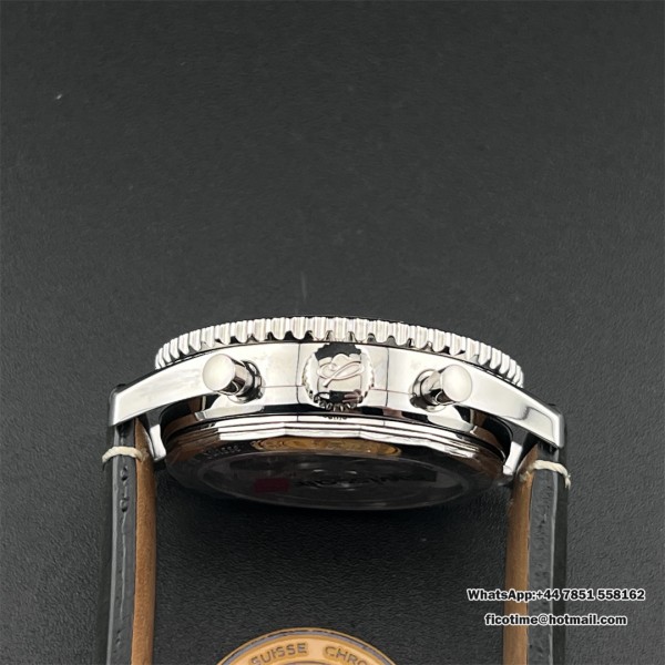 BLSF A7750 Breitling Chrono 43mm NAVITIMER B01 Black/White Dial Black Leather Strap