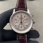 BLSF A7750 Breitling Chrono 43mm NAVITIMER B01 White Dial Brown Leather Strap