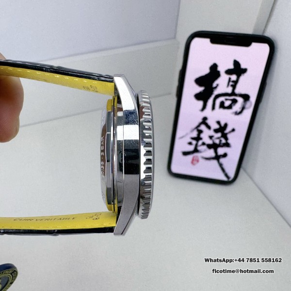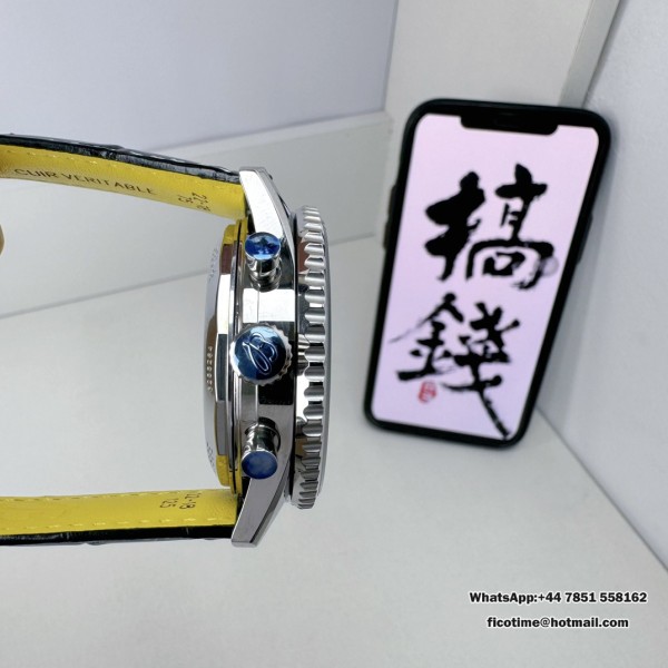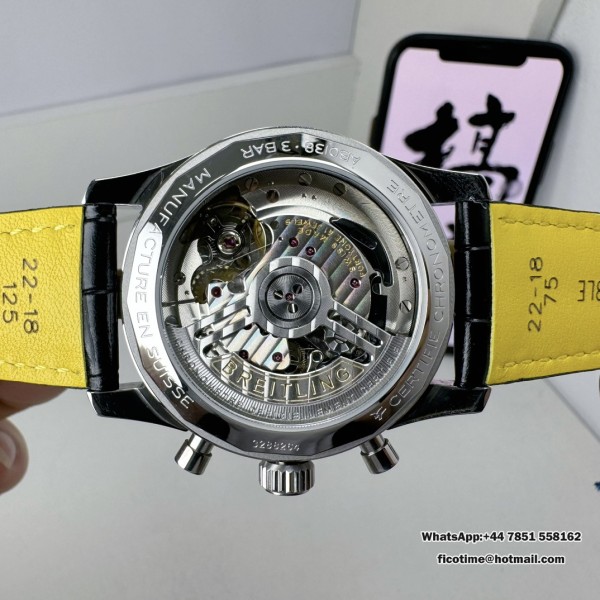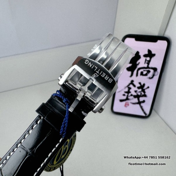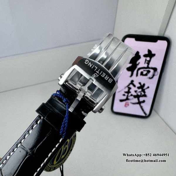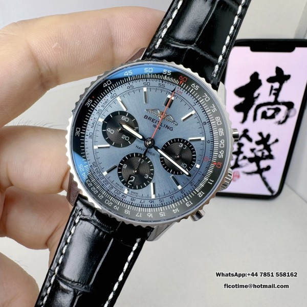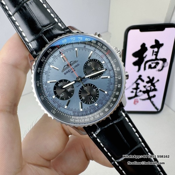 BLSF A7750 Breitling Chrono 43mm NAVITIMER B01 Ice Blue/Black Dial Black Leather Strap