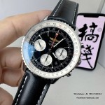 BLSF A7750 Breitling Chrono 43mm NAVITIMER B01 Black/White Dial Black Leather Strap