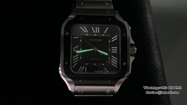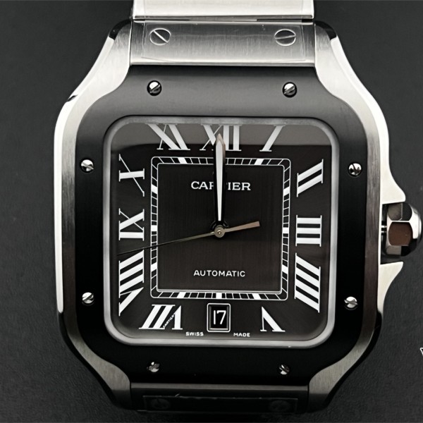 BVF MY9015 Santos Large 40mm Black Bezel Grey Dial SS Bracelet