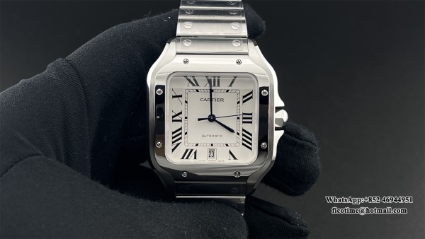 BVF MY9015 Santos Large 40mm Black Bezel Grey Dial SS Bracelet