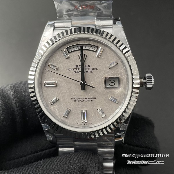 GMF A2836 Tungsten DayDate 40MM White Meteorite Dial President Bracelet