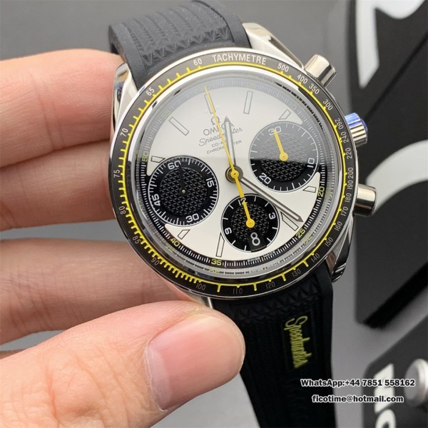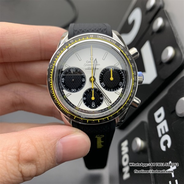 HRF A7750 Speedmaster 40mm Racing Master White/Black Dial Black Rubber Strap
