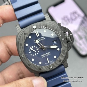 VSF P9000 PAM1232 44mm Submersible Carbon Blue Dial Blue Rubber Strap