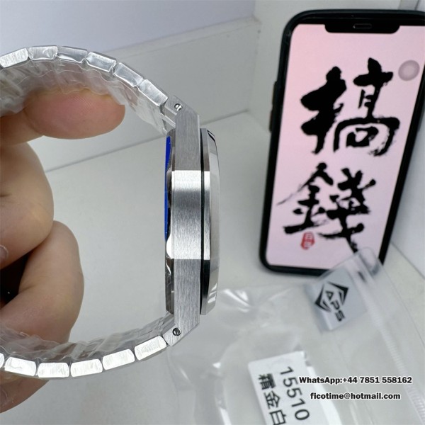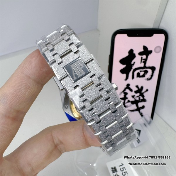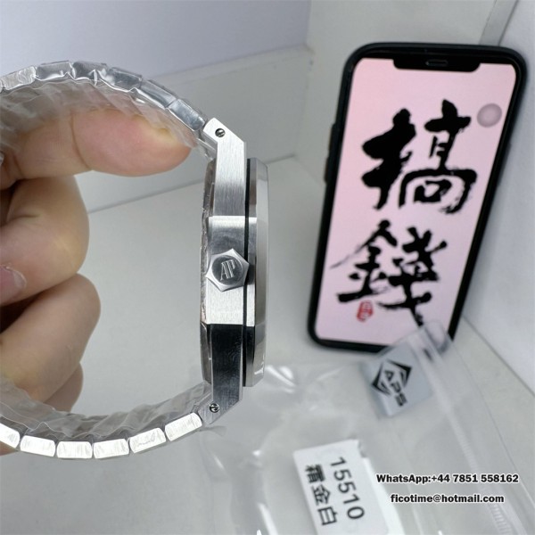 Royal Oak 41mm 15510 Frosted SS APSF 1:1 Best Edition White Textured Dial on SS Bracelet SA4302 Super Clone