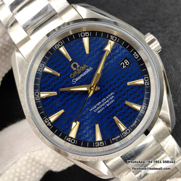 VSF A8500 Seamaster 41mm AQUA TERRA 150M Blue Textured Dial YG Hand SS Bracelet