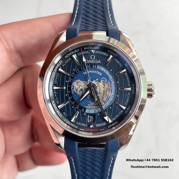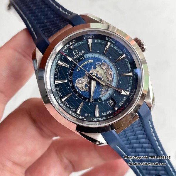 VSF A8938 Seamaster 43mm AQUA TERRA 150M Worldtimer Blue Dial Blue Rubber Strap