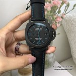 VSF P9000 PAM312 44mm Luminor Black Dial Black Leather Strap