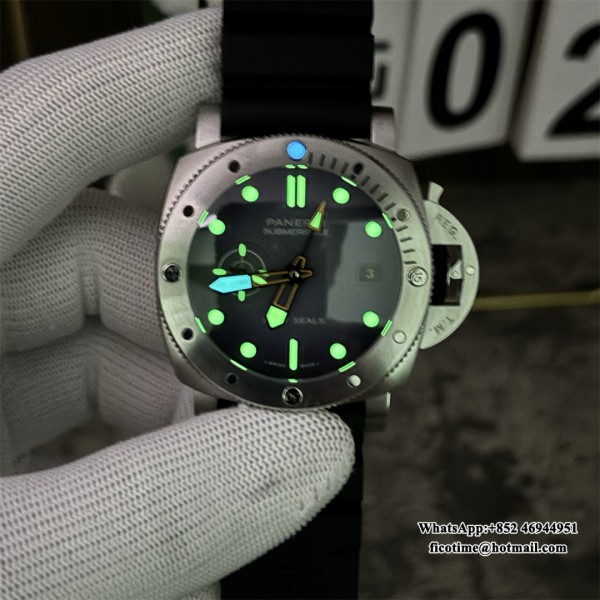 VSF P9000 PAM1324 44mm Submersible GMT Carbon Blue Dial Black Rubber Strap