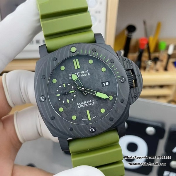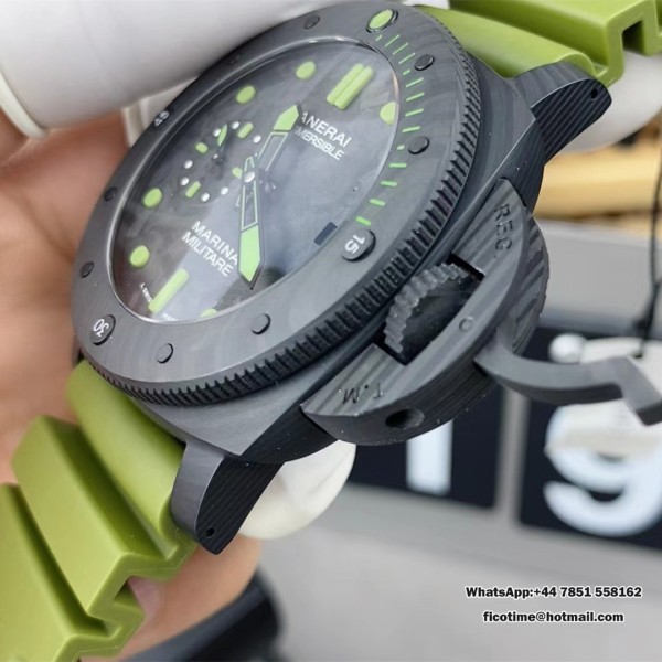 VSF P9000 PAM961 47mm Submersible Carbon Black Dial Green Rubber Strap