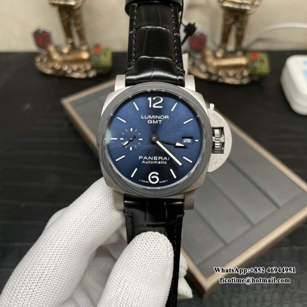 VSF P9010 PAM1279 42mm Luminor GMT Titanium Blue Dial Black Leather Strap