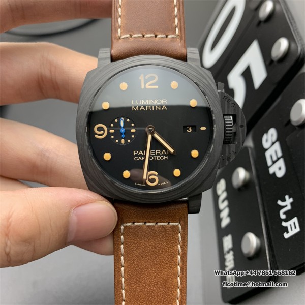 VSF P9010 PAM661 44mm Luminor Titanium Black Dial Brown Leather Strap