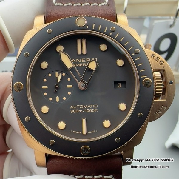 VSF P9010 PAM968 47mm Submersible Bronze Black Dial Brown Leather Strap