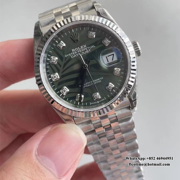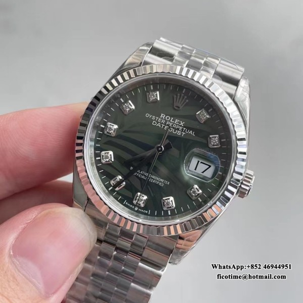 VSF VS3235 DateJust 36mm Fluted Bezel Green Palm Dial Diamond Marker Jubilee Bracelet