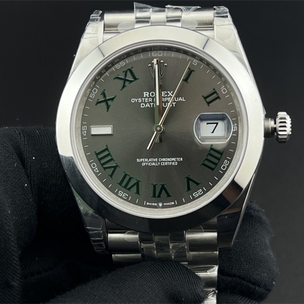 VSF VS3235 DateJust 41mm Wimbledon Smooth Bezel Grey Dial Green Roma Marker Jubilee Bracelet