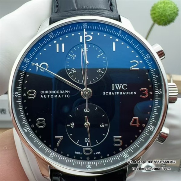 ZF A7750 IWC Portugieser Chrono 41mm IW371609 Black Dial Black Leather Strap