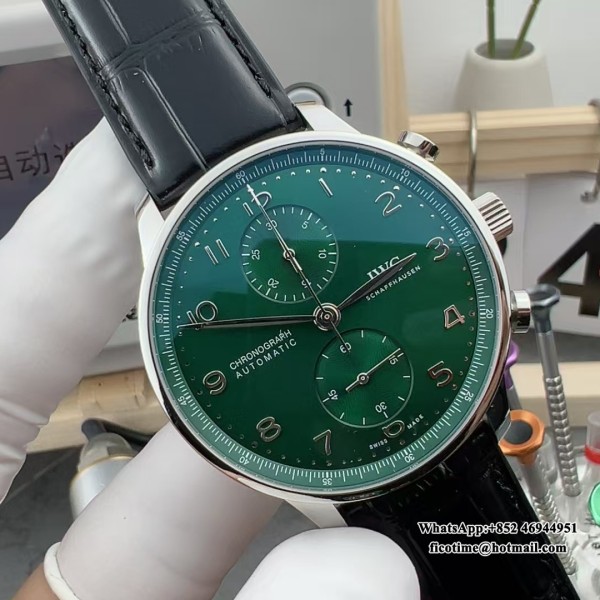 ZF A7750 IWC Portugieser Chrono 41mm IW371615 Green Dial Black Leather Strap